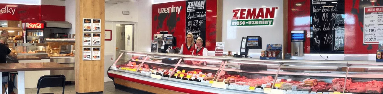 По всій країні працює понад 100 власних магазинів, де пропонують свіже м’ясо, ковбаси та інші м’ясні вироби. Наголос на якості, свіжості та чесному ремеслі робить ZEMAN maso - uzeniny, a.s. надійним роботодавцем і бізнес-партнером.